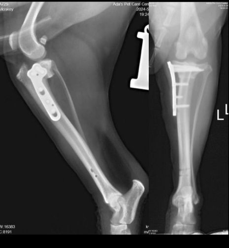 After hearing the diagnosis, the owner was understandably distressed. Dr. Sun provided a detailed explanation of the condition and treatment options. After a period of consideration, the owner decided to proceed with surgical treatment. A TPLO (Tibial Plateau Leveling Osteotomy) surgery was scheduled, and Monkey was admitted to the hospital for the procedure.